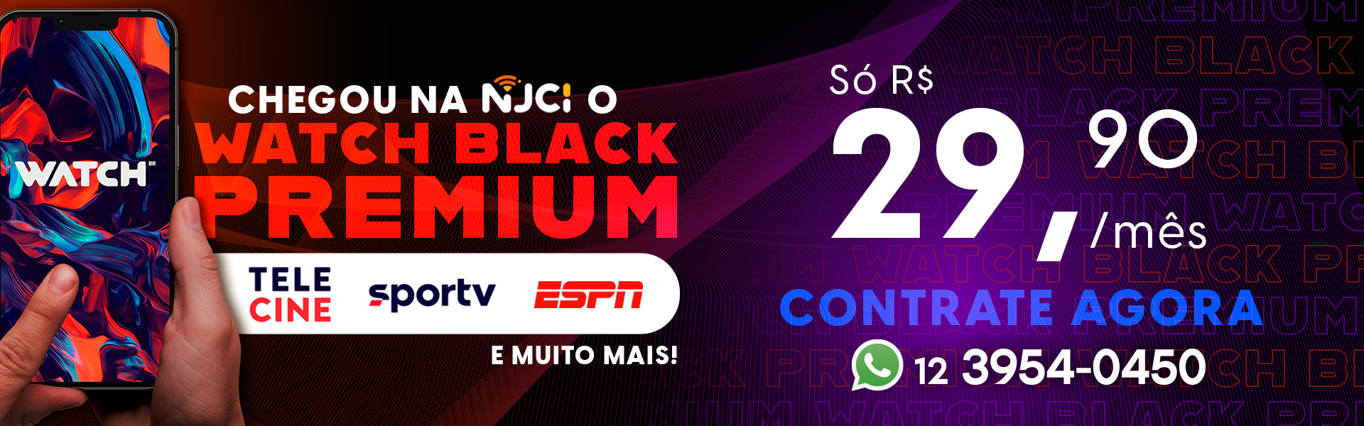 Chegou na NJCI o Watch Black Premium, o novo pacote da Watch com mais de 69 canais, incluindo Telecine, ESPN, SporTV, Globo News, GNT e muito mais!